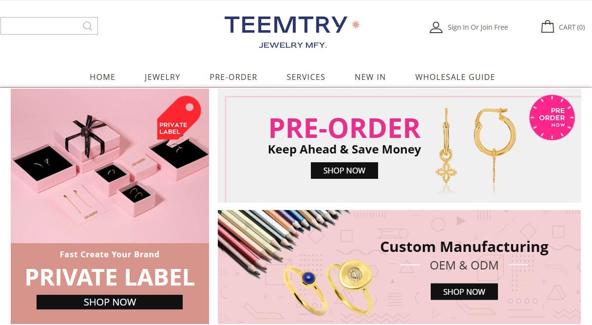Teemtry Jewelry designers skillfully craft some unique design. They have thus created a PRE-ORDER module. And build a unique showroom to exhibit their products.